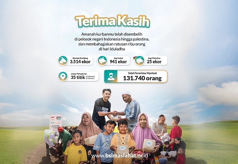 BSI Maslahat menyampaikan terima kasih dan apresiasi yang sebesar-besarnya kepada para donatur serta masyarakat Indonesia yang terus menunjukkan kepedulian dan solidaritas bagi masyarakat Palestina. Dukungan yang diberikan tidak hanya membantu memenuhi kebutuhan dasar, tetapi juga menjadi sumber harapan bagi ribuan keluarga yang tengah berjuang melewati masa-masa sulit. BSI Maslahat mengajak masyarakat untuk terus melanjutkan aksi kebaikan ini dengan menyalurkan dukungan melalui laman digital.bsimaslahat.or.id/palestina agar semakin banyak saudara kita di Palestina yang merasakan manfaat dari kepedulian dan kebaikan bersama.